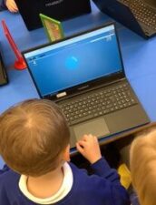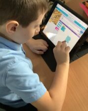 In Foundation 1 the children start to lay the foundations for computing by building an understanding of computational thinking. They use tasks around the classroom to play and explore; anticipate and explain; respond to instructions, introducing storylines and working out different ways to do things and work and play collaboratively.