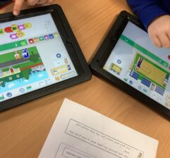 In Year 2 the children build on their multimedia skills. They use the iPads to take photographs, crop the images and edit them using filters and image techniques. They then use the computers to present the images taken, incorporating text and images together to create a resource for a particular audience.