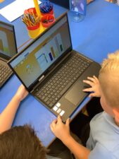 In Year 1 children explore what technology is, experiment using a keyboard and trackpad and learn the vital skills needed for using a laptop. They confidently log on, navigate to websites and practise their mouse skills.