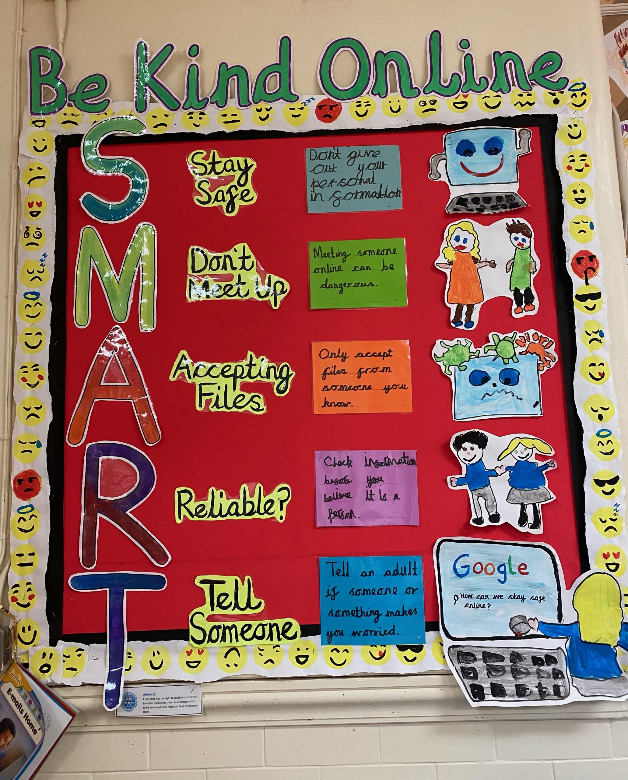 In Year 4 the children recap on how to keep their personal information private then delve into the world of social media, looking for information that shows fake news and how to ‘spot a bot’ on a computer rather than a real person. The children become aware of many problems with the Internet and how important it is to ensure they are checking information at all times. During Safer Internet week the children take part in workshops and activities to ensure the key messages are understood and that the children are able to implement them when necessary. Learning buddies are also used to ensure that children are able to share their knowledge and experience across year groups.