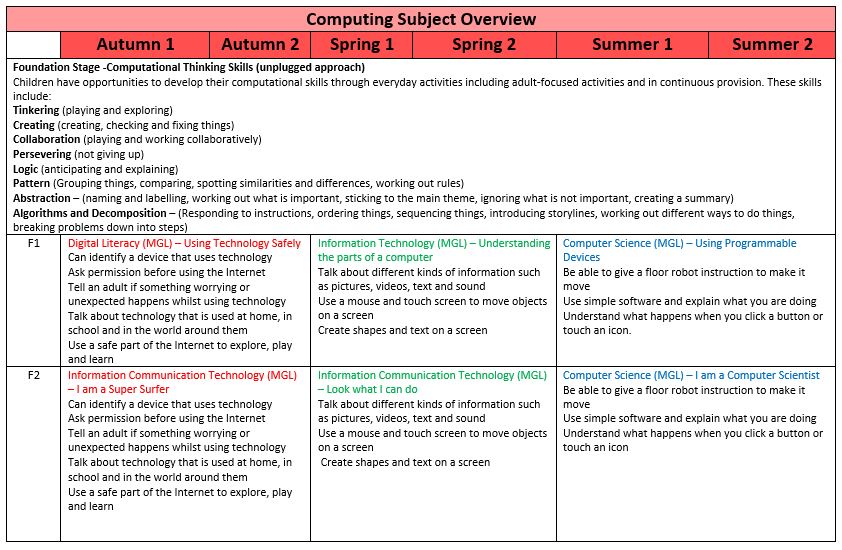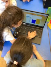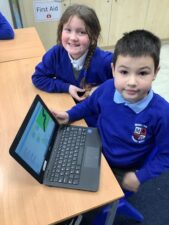 In Foundation 1 the children start to lay the foundations for computing by building an understanding of computational thinking. They use tasks around the classroom to play and explore; anticipate and explain; respond to instructions, introducing storylines and working out different ways to do things and work and play collaboratively.