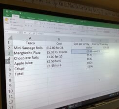 In Year 5 the children revise how to use Excel. They create an excel sheet with complicated formula to work out the profit for a shop. They discuss the idea of using formula to speed up the process when dealing with tricky numbers.