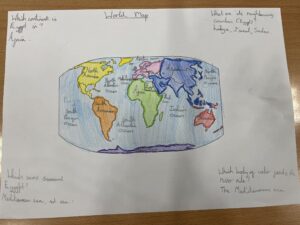 In Year 6 the children spend a lot of time doing map work, looking at different settlements during the Stone Age to Iron Age. They look at what different groups of people existed at the same time and who may have encountered each other for reasons like trade and farming.