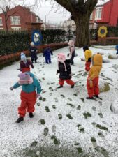 In Foundation 1 the children wrap up to explore the snow in the outdoor area.