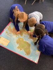 - Throughout the year groups there is a strong focus on locational knowledge. Maps, atlases and digital technologies are used regularly to identify the location of places as a context to further learning. Pupils have frequent opportunities to develop their map work skills using maps on a variety of scales.