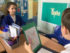 In Year 6 the children spend a lot of time doing map work, looking at different settlements during the Stone Age to Iron Age. They look at what different groups of people existed at the same time and who may have encountered each other for reasons like trade and farming.