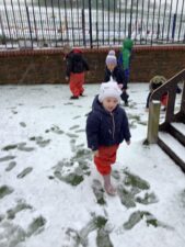 In Foundation 1 the children wrap up to explore the snow in the outdoor area.