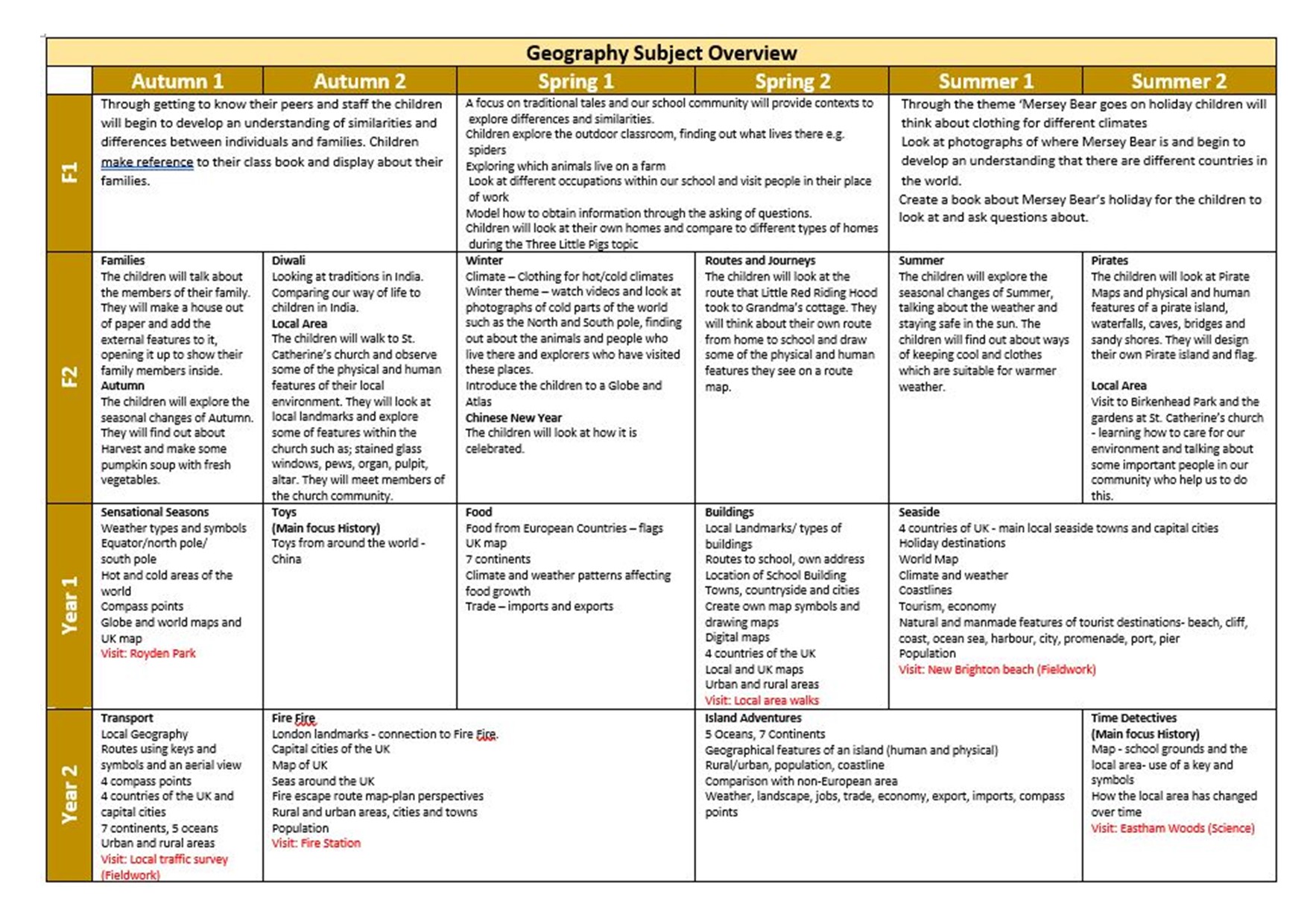 Whole School Geography Overview