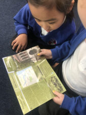 In Year 2 the children discover a mystery box which contains artefacts from the school a long time ago. They learn about schools in the past and how they compare to school today.