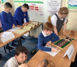 In Year 6 the children complete a pyramid investigation. They compare Egyptian pyramids to Mayan temples, looking at similarities and differences. They create their own timelines during their study of Ancient Egypt. They consider key dates in Ancient Egyptian history and look at other powerful civilisations around that period.