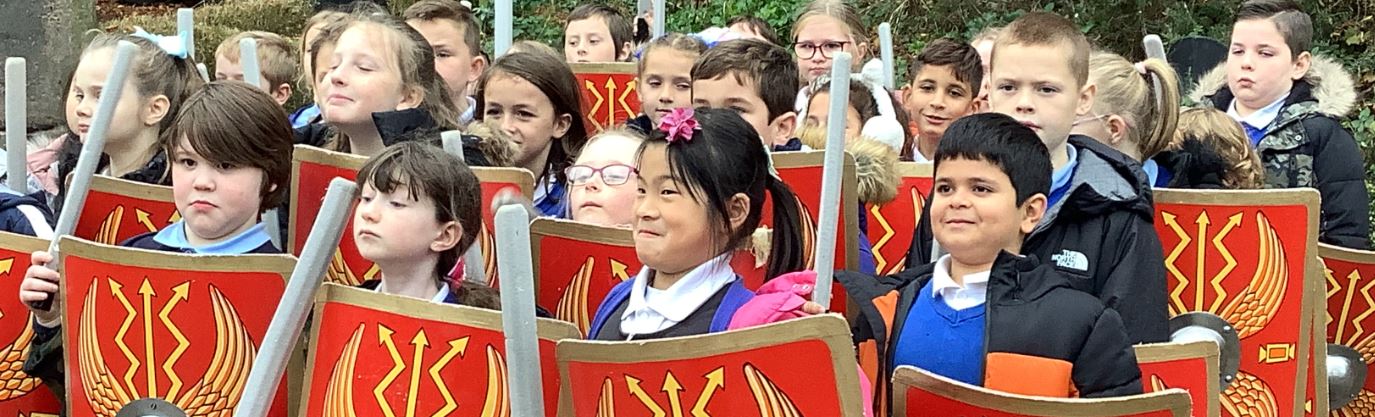 Year 4 learn about the Roman Empire, its beginnings and lifestyles including Emperors, Gladiators, slaves and the army. They learn about Britain at the time of the Roman invasion and find out about the names of towns created by the Romans such as Bath, London and Chester. Year 4 also find out about the legacy of the Romans- calendar, money, roads, aqueducts, architecture, bureaucracy and rules. The highlight of this history topic is the trip to Chester, where they examine Roman artefacts in the Dewa Museum and also march around the city to see the remains of the Amphitheatre with a Roman legionary.