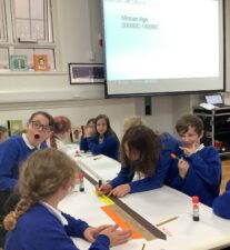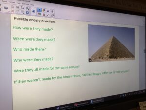 In Year 6 the children complete a pyramid investigation. They compare Egyptian pyramids to Mayan temples, looking at similarities and differences. They create their own timelines during their study of Ancient Egypt. They consider key dates in Ancient Egyptian history and look at other powerful civilisations around that period.