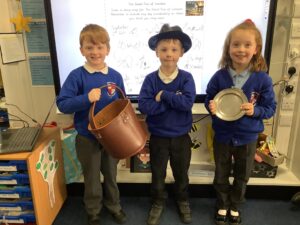 They then start their topic of Fire Fire where they learn about The Gunpowder Plot. They learn about when this happened and how this event took place beyond living memory. They also talk about why Guy Fawkes wanted to blow up the Houses of Parliament. They take part in a P4C discussion about, ‘Should you always follow your friends?’. They also create a story map pf the events of The Gunpowder Plot and act out the events.
