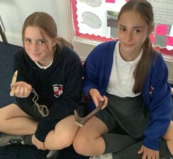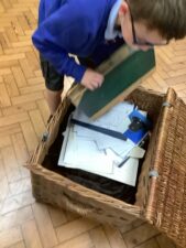 In Year 2 the children discover a mystery box which contains artefacts from the school a long time ago. They learn about schools in the past and how they compare to school today.