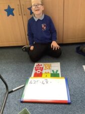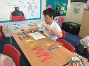 In Year 3 the children start the year learning about place value of 3 digit numbers. They use a range of concrete manipulatives to form 3 digit numbers. The children then use their knowledge of place value to add and subtract numbers, then eventually progress to the column method to answer addition and subtraction calculations.
