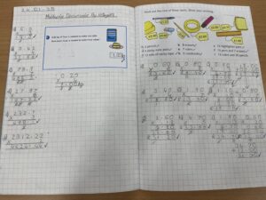 In Year 3 the children learn how to multiply and divide 2 digit numbers by 1 digit numbers. They use concrete manipulatives and pictorial representations to help them do so. The children enjoyed using classroom objects and hula hoops to further their understanding of division. The children also enjoyed learning how to convert, add and subtract money. They used real life money to solve different problems. They now understand the value of each coin.