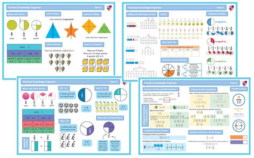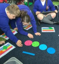 In Year 4 the children continue to study fractions. This includes looking at families of equivalent fractions, adding and subtracting fractions with the same denominator and converting mixed fractions to improper ones.