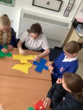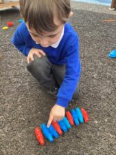 In Foundation 2 the children enjoy creating their own number track. They roll the dice and eagerly anticipate which number they will land on. The children explore height, building towers and comparing their height, using the vocabulary ‘taller’ and ‘shorter’ to describe them. They also find a selection of items from around the classroom to compare the weight of. They pretend to be a human balance first and feel which object is heavier. Then they use the balance to see if they are right. They begin to use the vocabulary ‘heavier’ and ‘lighter’. The children also enjoy making increasingly complex patterns and describing them to their friends.