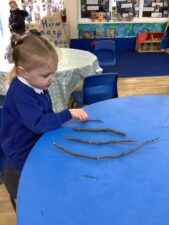 In Foundation 1 the children begin to recognise and write numerals. They also measure and compare items to see which is the longest and which is the shortest.