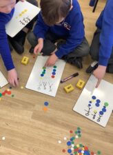 In Foundation 2 the children continue to learn all about numbers to 5, involving matching the numeral to the correct amount. They practice counting with 1 to 1 correspondence. They use models such as part wholes and five frames to make their numbers. They begin to explore different ways of making numbers up to 10.