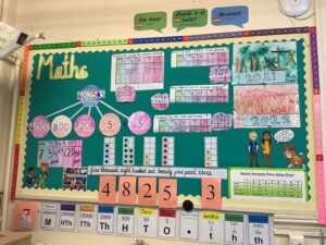 In Year 5 the children start the year consolidating their knowledge of place value. They revise pictorial representations used to represent numbers to 1 million. They use concrete manipulatives to make numbers using place value charts. They also learn to read and write Roman Numerals. Year 5 then move on to addition and subtraction where they build on the skills taught in Year 4 by adding and subtracting increasingly large numbers up to 1 million using formal methods. Towards the end of the term, Year 5 then work on their statistics topic where they gain an understanding of how to read and interpret line graphs and two way tables.