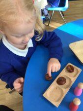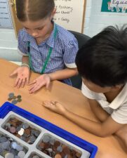 In Foundation 1 children develop a love of maths through games, songs, rhymes, and play using concrete manipulatives. The children begin to learn the basic counting principles; one to one correspondence, stable order and cardinal principle. Children’s fine manipulative skills are a focus to develop 1-1 correspondence so children count each object only once.