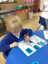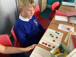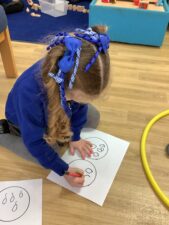 In Foundation 2 the children continue to learn all about numbers to 5, involving matching the numeral to the correct amount. They practice counting with 1 to 1 correspondence. They use models such as part wholes and five frames to make their numbers. They begin to explore different ways of making numbers up to 10.