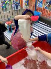 In Foundation 1 the children explore capacity in the water tray. They identify patterns around the different areas and then create and extend their own patterns. They also select the correct shapes to help them to build.
