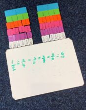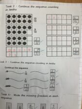 In Year 4 the children continue to study fractions. This includes looking at families of equivalent fractions, adding and subtracting fractions with the same denominator and converting mixed fractions to improper ones.