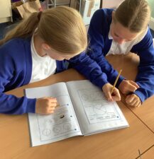 In Year 6 they do lots of data handling in this term. They look at different types of graphs and how to find information from them. They also look at properties of 3D shapes. They match shapes to their nets and investigate how many different nets they can make for the same 3D shape.