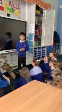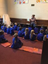 In Foundation 2 the children use litter pickers to collect rubbish which has been left in their outdoor area. They find out about how to care for their environment and think about people in the community who help to keep everywhere tidy. They enjoy a visit to St. Catherine’s church where they listen to the story of creation from the Bible. They are fascinated by the church building and what they see inside.