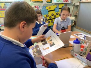 In Year 4 the children look at images and videos of both Bishops and Arch Bishops, and together they create posters which show the importance of what they wear and why.