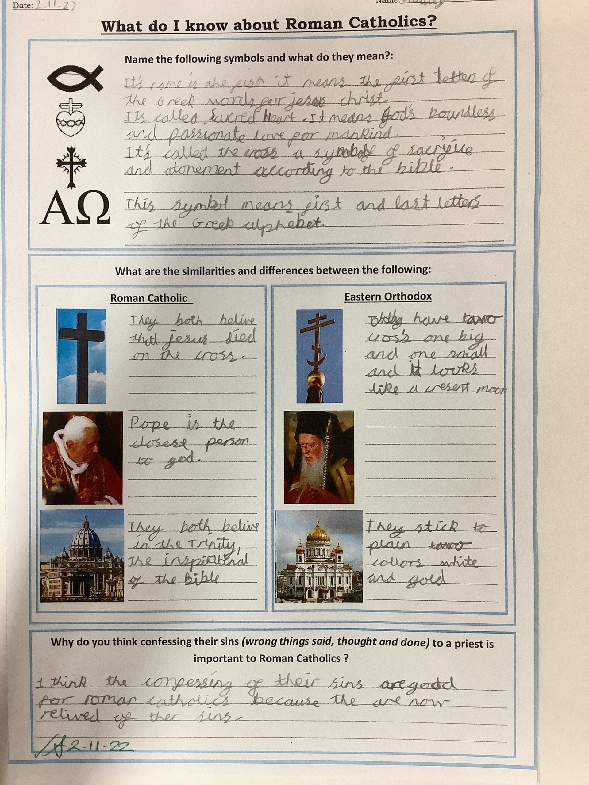 In Year 5 the children will learn about the differences between Orthodox, Catholic and Protestant Christians. They then learn about the life of Martin Luther and how he split the church into Catholics and Protestants. They also learn the difference between the key symbols of different faiths.