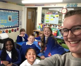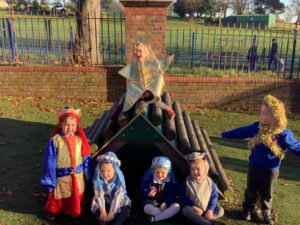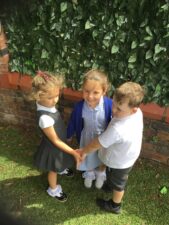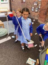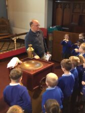 In Foundation 2 the children use litter pickers to collect rubbish which has been left in their outdoor area. They find out about how to care for their environment and think about people in the community who help to keep everywhere tidy. They enjoy a visit to St. Catherine’s church where they listen to the story of creation from the Bible. They are fascinated by the church building and what they see inside.
