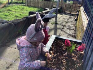 In Foundation 1 the children learn about how Christians celebrate Easter. They go on an Easter hunt in the outdoor area.