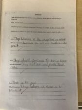 In Year 5 the children learn what a rabbi and a chief rabbi are and what they do and revise the purpose and symbolism of Jewish artefacts. They learn what a synagogue is and its features and revise some important events in some Jews lives. They move onto Christians and learn how they treat their dead and what happens at funerals and compare to other religions.