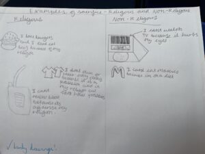 In Year 6 the children revise lent and fasting and the importance of self-sacrifice in different religions. They look at the sacrifices different people make both religious and non-religious and the symbolism behind it. They also look at how religious figures in the past tackled hardship and fasting.