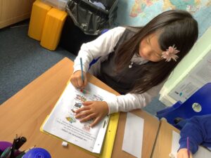 In Year 5 the children learn the verb to have and use it to describe school equipment they have. They also give their opinions on likes and dislikes.