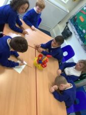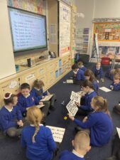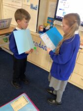 In Year 2 the children use think, pair, share as a technique to build their original ideas. This ensures the children are able to think of an idea, then have time to pull their thoughts together before presenting it to the class. They use carpet sessions and teamwork regularly to continue to build up their vocabulary and encourage them to become confident speakers. Across all subjects they are given time to speak together and are actively encouraged to listen to their peers ideas too.