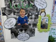 In Year 1 the children continue to develop the necessary skills for speaking and listening through a wide range of activities. There are opportunities for the children to consider different ideas, pose questions on different topics and discuss with the class their own views. The children continue to build up their story telling language through role play and retelling the story and are given many opportunities both in the classroom and other areas of the school to discuss their learning.