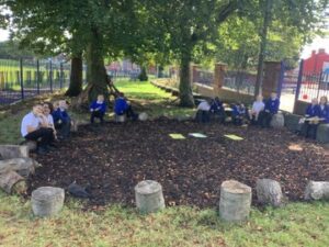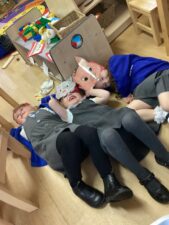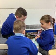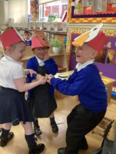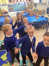 In Foundation 2 the children are actively encouraged to act out stories they have been told so they can practise using storytelling language and vocabulary. They use carpet time and outdoor areas to hold regular discussions about work and practise their speaking and listening skills together.