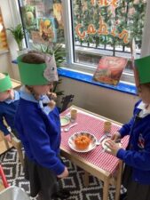 In Literacy every year group orally retells a story incorporating actions before writing their own version of the story.