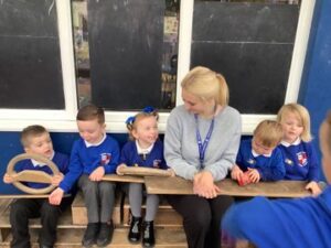 In Foundation 1 there are many opportunities for the children to practice their speaking and listening skills through the use of nursery rhymes, performance activities and shared tasks. It can be noisy in Foundation 1 sometimes but that is because they are always talking to each other about their learning.