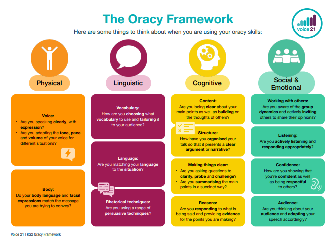 At Mersey Park Primary School, we value the importance of oracy for all our children. We see it an essential life skill and something that needs to be explicitly taught, modelled and assessed. Our school is part of the Voice 21 programme. Throughout the school day and across the curriculum, we encourage our pupils to speak clearly and confidently and to articulate their views and opinions. We have established discussion guidelines which help the children to be good listeners and to respect each other’s ideas and opinions. We also use a range of talk tactics to help children to instigate, build, clarify and challenge others during respectful discussions. We teach children to express themselves orally in an appropriate way, matching their spoken language and responses to suit different audiences and for different purpose. Their spoken language skills are further developed in regular P4C sessions.
