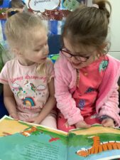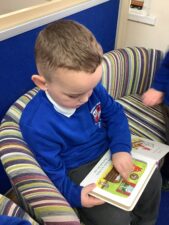 In Foundation 1 the children begin to listen to the sounds around them, identify initial sounds and mark make on a variety of materials. They learn to enjoy books and stories.