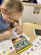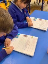 In Foundation 2 the children continue to build on their love of books and stories. The children continue to develop their mark making skills by practising letter formation, using the letter sounds to write words and build these into sentences.