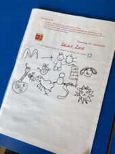 Early writing begins in F1 where children are encouraged to make marks which they start to give meaning to. They are provided with a wide range of stimulating equipment to encourage make making such as large brushes with paint or water and dragging streamers through puddles. Once large muscles co-ordination is well developed children begin to develop small muscle co-ordination using chalk, pencils and felt pens. As children’s marks develop they are motivated to write in a wide range of ways through carefully planned opportunities for writing e.g. chalking on paving stones, boards and notepads in the home corner. They begin to use some of their letter knowledge in their writing. This usually begins with letters from their name and progresses on to children using known letters for the initial sound in words. As their phonic knowledge increases they begin to segment simple words (vc/cvc) to spell. When the children are able to spell simple words they are introduced to how sentences are structures. The idea of Talk for Writing is used to develop simple story structures, embedding key vocabulary and developing independent writing confidence.