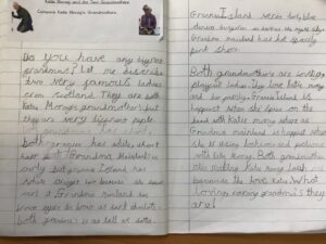In Year 2 the children read about the adventures of Katie Morag and all the activities that take place on the Isle of Struay. They compare Katie Morag’s two Grandmas and write descriptions of them. They write letters to Mairi Hedderwick, the author of the Katie Morag books asking her about where she gets her ideas from.