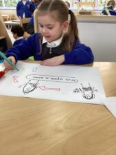 In Year 2 the children continue to build on their Phonics knowledge and work on spelling patterns. They use this knowledge in their writing and develop new techniques to enhance their writing. They complete short burst writing tasks such as character descriptions, setting descriptions and recounting events. They continue to act out the stories they read in order to make it a memorable experience and use these actions to create their story maps before rewriting their versions of a story.