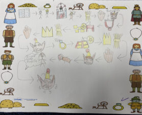In Year 3 the children learn the story of Rumpelstiltskin. They create their own story maps then orally retell the story. They then think about how they can use this story as inspiration for their own story and innovate the key elements of the story to create their own. They use a boxing up template to think about what key elements of the story they will innovate.